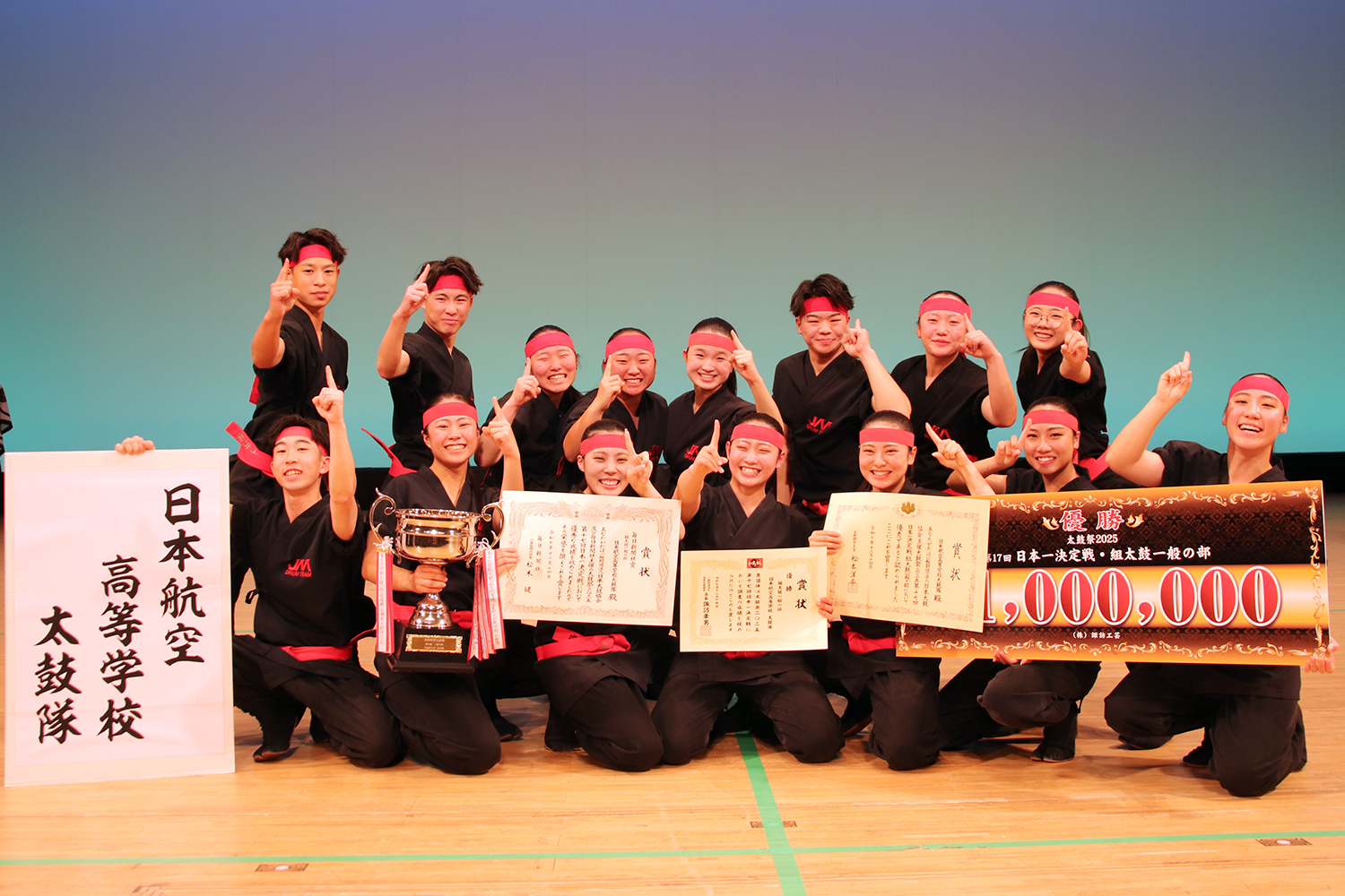 優 勝: 日本航空高等学校 太鼓隊 ▲文部科学大臣賞 受賞▲